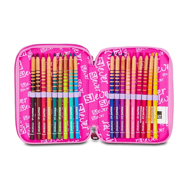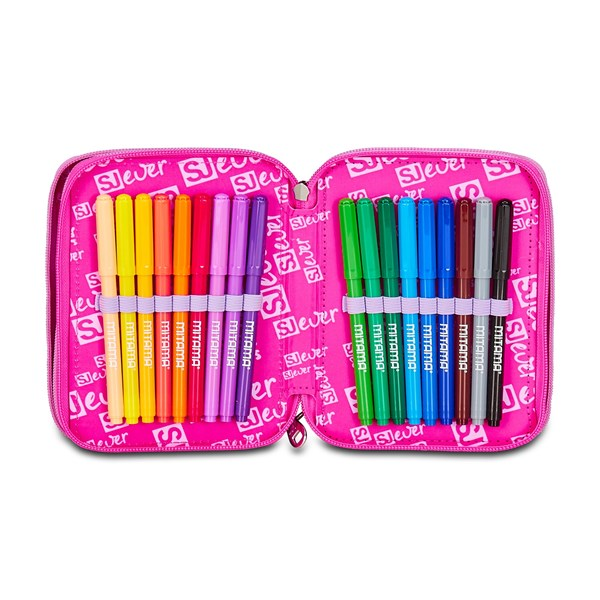 Astuccio 3 Zip Fixstar Girl SJ Ever - Collezione Seven Back to School 2025-2026 Questo astuccio Seven 3 zip ha tre scomparti in cui troverai tutto il materiale necessario per la tua giornata di scuola. A te non resta altro che abbinarlo a uno zaino o trolley Seven. Dimensioni: 12,5 x 20 x 7 cm Contenuto 45 pezzi: 1 Penna cancellabile blu, 1 Penna a sfera rossa, 18 Pastelli, 18 Pennarelli, 1 Matita HB, 1 Colla, 1 Gomma, 1 Temperino barilotto 2 fori, 1 Righello, 1 Pastello tondo 4.0 bicolor, 1 Forbice in metallo Tasche: Triplo scomparto Tessuto: Poliestere