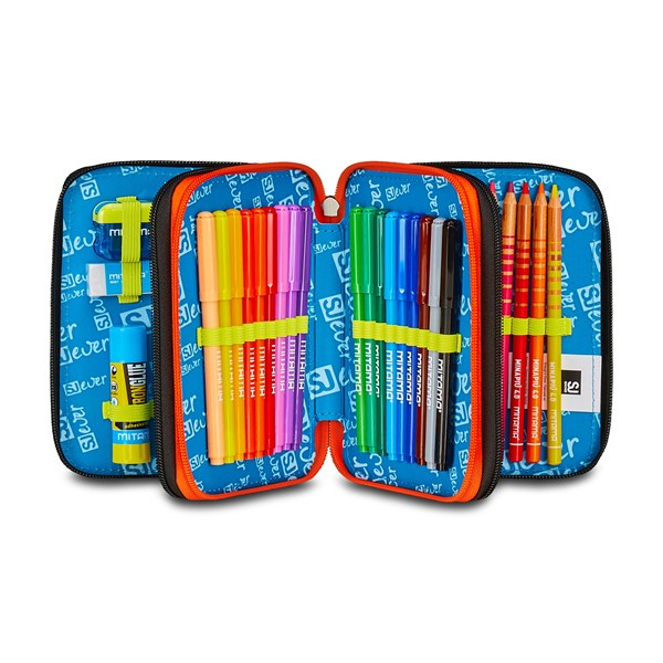 Astuccio 3 Zip Rules Boy SJ Ever - Collezione Seven Back to School 2025-2026 Questo astuccio Seven 3 zip ha tre scomparti in cui troverai tutto il materiale necessario per la tua giornata di scuola. A te non resta altro che abbinarlo a uno zaino o trolley Seven. Dimensioni: 12,5 x 20 x 7 cm Contenuto 45 pezzi: 1 Penna cancellabile blu, 1 Penna a sfera rossa, 18 Pastelli, 18 Pennarelli, 1 Matita HB, 1 Colla, 1 Gomma, 1 Temperino barilotto 2 fori, 1 Righello, 1 Pastello tondo 4.0 bicolor, 1 Forbice in metallo Tasche: Triplo scomparto Tessuto: Poliestere