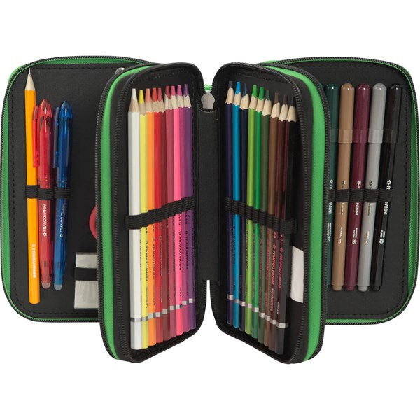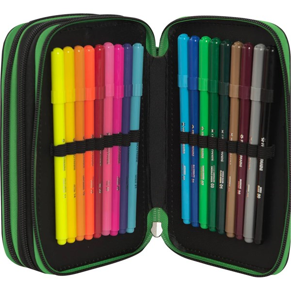 L'astuccio personalizzato Minecraft è ideale per bambini e bambine appassionati di videogiochi ed è distribuito con licenza originale da Franco Cosimo Panini Editore. Dispone di 3 scomparti e ti permetterà di organizzare e trasportare comodamente tutti i tuoi strumenti di scrittura e disegno per la scuola, per averli sempre a portata di mano. Grazie alle dimensioni di 20x13hx7 cm, questo astuccio è molto spazioso e include 18 pennarelli, 18 matite colorate con mina 4.0, matita, gomma, righello, temperino con serbatoio, forbici con punta arrotondata, squadra, penna rossa e penna blu cancellabili Frixion e 5 etichette porta-nome. Preparati ad esprimere la tua creatività in modo organizzato e divertente!