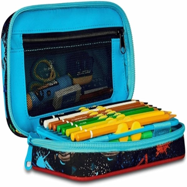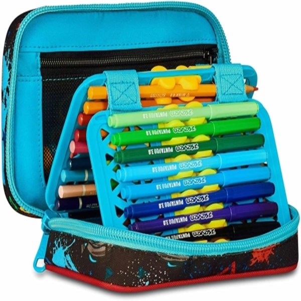 Descrizione Dimensioni: 14,3 x 20,5 x 7 cm Tasca: Tasca interna per cancelleria Tessuto: Poliestere Altre caratteristiche: Apertura singola tramite maxi zip, plance interne amovibili e agganci flessibili in gomma per cancelleria. CONTENUTO 44 PEZZI: 1 penna cancellabile blu, 1 penna sfera rossa, 18 pastelli a colori 4.0 esagonali, 18 pennarelli superlavabili punta 3.0, 1 matita grafite esagonale HB, 1 colla gialla azzurra, 1 gomma bianca con cartoncino stampato, 1 temperino barilotto 2 fori, 1 righello trasparente azzurro, 1 paio di forbici in metallo con maniglia in plastica L’astuccio SJ GANG Speed Pad lo puoi montare e smontare a tuo piacere ed è interamente lavabile. È dotato di una comoda apertura tramite maxi zip e di plance con un sistema a incastro, senza elastici, per inserire più facilmente penne e matite che troverai nell’apposita bustina. Comodo, pratico e versatile, non ti resta che abbinare il tuo nuovo astuccio Speed Pad a uno zaino o a un trolley SJ GANG per affrontare al meglio la tua giornata di scuola.