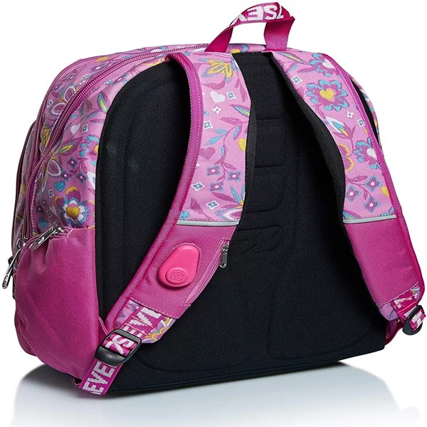 Doppio scomparto. ZAINO SCUOLA E TEMPO LIBERO. SCHIENALE: Ergosystem preformato con fondo integrato. SPALLACCI: Imbottiti e rivestiti in tessuto e rete traspirante. TASCHE: Tasca interna porta tablet/Laptop fino a 15".