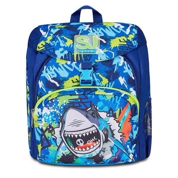 Sono il nuovo zaino PRIMINO SHARKSTORY SJ Gang! Sono stato pensato per accompagnarti a scuola in modo colorato, comodo e divertente! Quando mi indosserai avrai la massima libertà di movimento grazie alla mia struttura. Sono anche dotato di pratiche tasche, come quella per la borraccia, e grazie al fondo integrato il carico è sempre ben bilanciato. Schienale Preformato con fondo integrato Capacità 22 lt Dimensioni 27 x 36 x 22 cm Altre caratteristiche Zaino monoscomparto Tasche Doppia tasca frontale e tasca laterale in rete portaborraccia Spallacci Imbottiti e rivestiti in tessuto e rete, con sagomatura anatomica Tessuto Poliestere