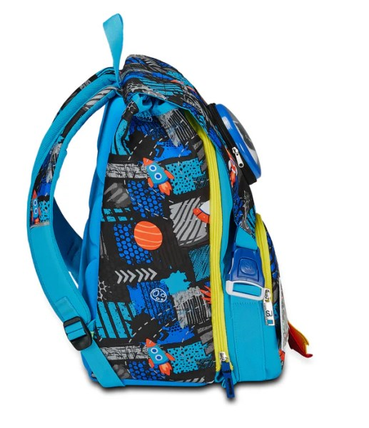 Ciao! Sono GO TO SPACE, lo zaino estensibile SJ GANG con cui vai a scuola e che ti accompagna nelle tue prime esplorazioni. Il mio aspetto è quello di un razzo, con tanto di portachiavi estraibile a forma di astronauta, dettagli con effetti prismatici e fiamma in materiale morbido. Ho un doppio scomparto spazioso, di cui puoi aumentare facilmente la capienza tramite le zip laterali per poter accogliere e distribuire in modo ottimale libri, quaderni e tutto ciò che ti serve per la tua giornata, potendo sfruttare anche la tasca frontale e la tasca porta borraccia. Inoltre, sono davvero comodo da indossare sulle spalle, grazie a schienale e spallacci confortevoli. In più, il fondo integrato mantiene la mia struttura inalterata, garantendo la stabilità del contenuto anche a pieno carico. Indossandomi sulle spalle spiccherai il volo. Schienale Design con preformature nei punti di contatto e fondo integrato Capacità 26 lt - 31 lt Dimensioni 27 x 41 x 16 (+6) cm Altre caratteristiche Zaino estensibile tramite zip laterali, dotato di inserti rifrangenti. Sagome applicate su tasca: dettagli del razzo con effetti prismatici e fiamma in materiale morbido Tasche Tasca frontale, tasca su pattina, tasca in rete porta borraccia e taschino trasparente chiuso con zip che contiene un portachiavi astronauta Spallacci Imbottiti e rivestiti in tessuto e rete, con sagomatura anatomica Tessuto Poliestere Garanzia 4 anni