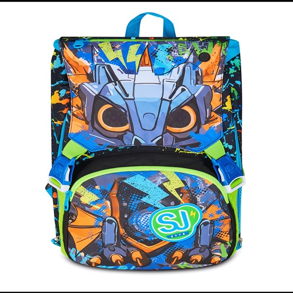 LED LOOK, lo zaino estensibile SJ GANG con cui vai a scuola, ma puoi anche giocare. Divertiti ad accendere tutte le volte che vuoi gli OCCHI sulla pattina! Tramite pulsante ON/OFF puoi attivare il dispositivo luminoso con effetto LIGHTING MOVING EYES. Il dispositivo è ricaricabile tramite USB ed è inserito in un pattina staccabile, così lo zaino rimane lavabile. Ho un doppio scomparto spazioso, di cui puoi aumentare facilmente la capienza tramite le zip laterali per poter accogliere e distribuire in modo ottimale libri, quaderni e tutto ciò che ti serve per la tua giornata, potendo sfruttare anche la tasca frontale e la tasca porta borraccia. Inoltre, sono davvero comodo da indossare sulle spalle, grazie a schienale e spallacci confortevoli. In più, il fondo integrato mantiene la mia struttura inalterata, garantendo la stabilità del contenuto anche a pieno carico. Schienale Preformato con fondo integrato Capacità 24 lt - 27 lt Dimensioni 27 x 39 x 16 cm (+6) Altre caratteristiche Zaino estensibile tramite zip laterali, dispositivo luminoso su pattina, effetto 'lighting moving eyes' attivabile tramite pulsante on/off sulla pattina e sistema ricaricabile tramite usb. Pattina staccabile tramite zip che permette il lavaggio dello zaino. Tasche Tasca frontale, tasca laterale in rete porta borraccia Spallacci Imbottiti rivestiti in tessuto e rete, con sagomatura anatomica e inserti rifrangenti Tessuto Poliestere Garanzia 4 anni